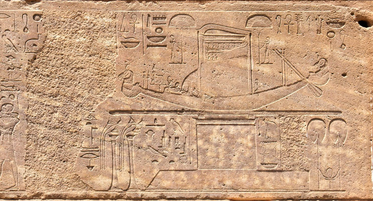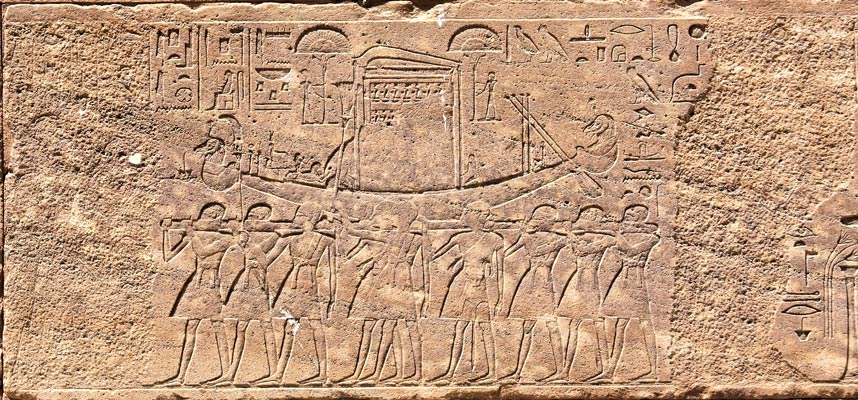 La barque est sur son reposoir à Karnak dans la Chapelle Rouge située dans le temple d'Amon. Cette scène se trouve sur l'assise 3 à l'extrémité du mur sud côté est. Toute la procession se déroule sur cette assise d'est en ouest.