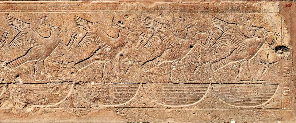 L'assise 1 est constituée d'une frise d'oiseaux rekhit en prière..
