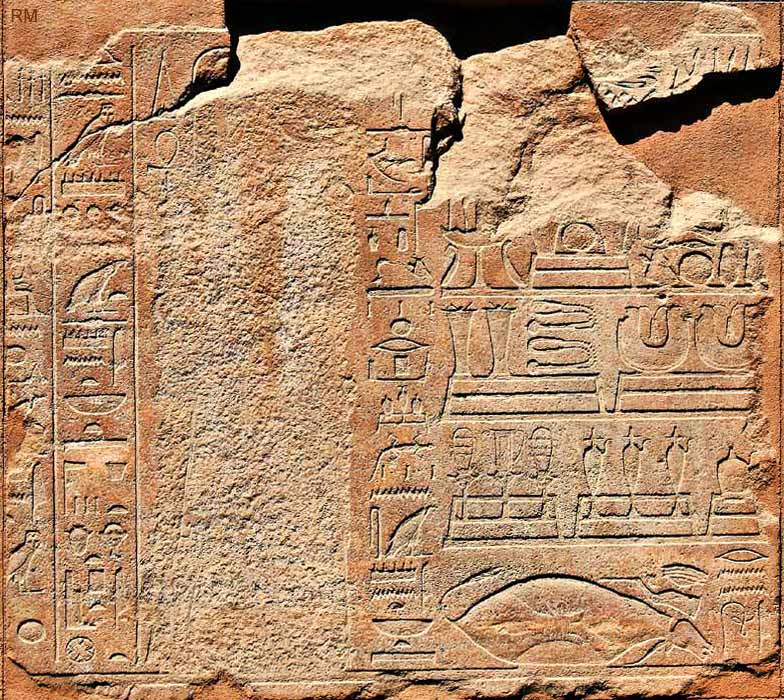 L'assise 4 comporte des scènes symétriques au nord et au sud. Elle est incomplète des deux côtés. Au nord, les blocs des scènes 1 et 2 sont manquants.