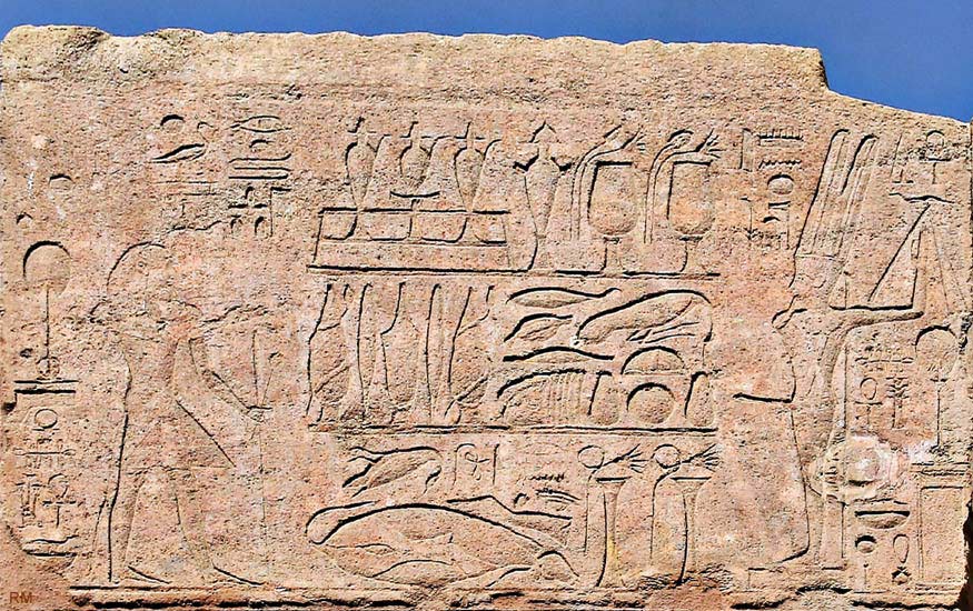 A gauche, la scène 1 : Thoutmosis III offre 2 pains à Amon-Min