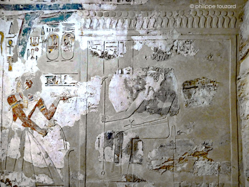 Le roi fumigène de l'encens et verse une libation devant Ptah et Sekhmet.