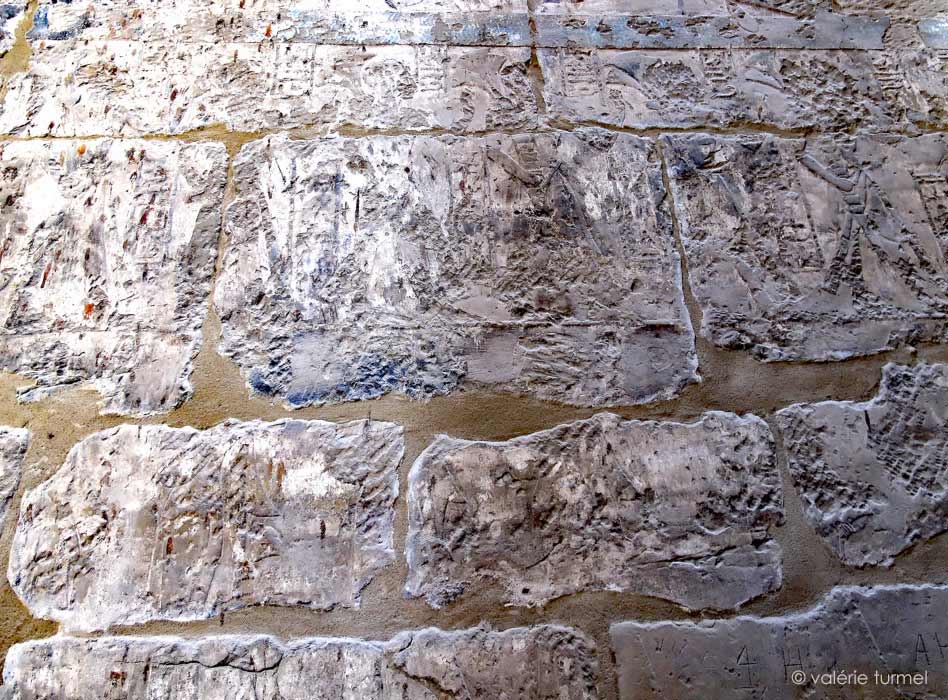 À l'instar des grands pharaons comme Ramsès II, Hérihor a fait figurer sa descendance sur la paroi Ouest de la cour, avec au premier niveau ses fils et au second niveau ses filles. La reine Nedjemet les présente.
