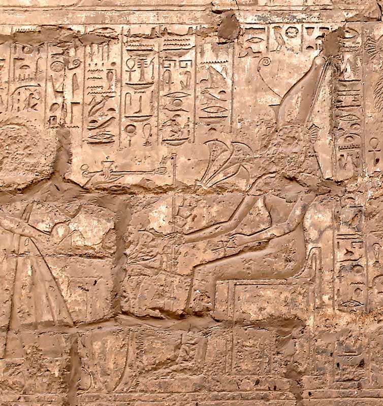 Le grand prêtre Hérihor fumigène de l'encens et verse une libation devant Mout la grande, dame d'Ichérou (son domaine à Karnak). La déesse lui donne toute vie, stabilité et puissance et toute santé, comme Rê. Mout a préparé son souffle brûlant contre les ennemis du roi.
