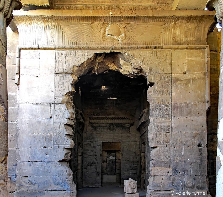 La porte a été dégradée. Le linteau comporte 4 scènes d'offrandes et chaque montant 5.