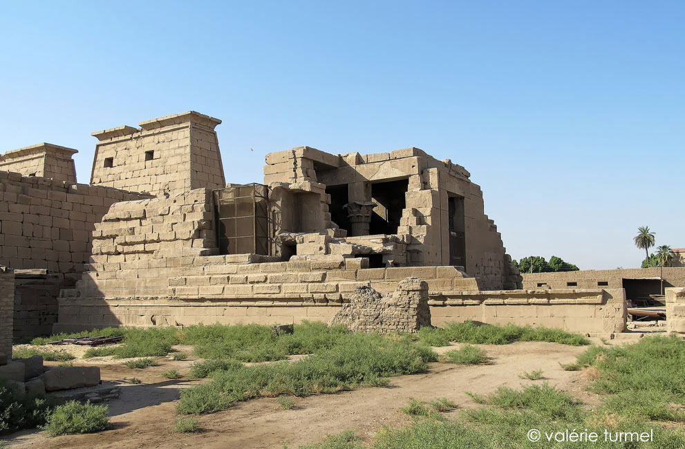 La face extérieure Nord est très endommagée. Seule une partie du soubassement est décoré de quelques scènes concernant la Bass Egypte, la nomenclature des nomes s"arrêtant au huitième. Bien que la paryie du haut n'existe plus, comme il semble que la décoration commençait ici par le bas (voir la face extérieure Sud), il est fort pprobable qu'aucune autre décoration ait jamais existé.