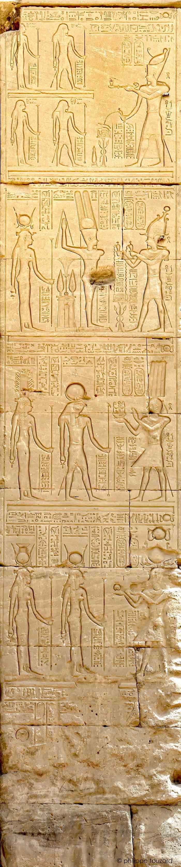 Ptolémée Neos Dionysos offre le signe Heh à Khonsou dans Thènes, maître de Beneret (le temple de Khonsou à Karnak) qui donne au roi des millions de fêtes-Sed et Hathor,qui réside dans Benenet, qui lui donne elle-aussi une infinité de fêtes-Sed.