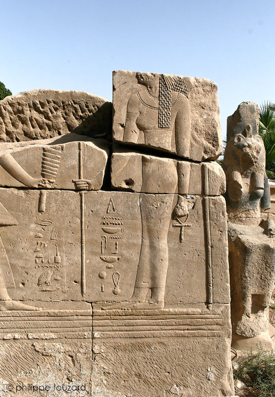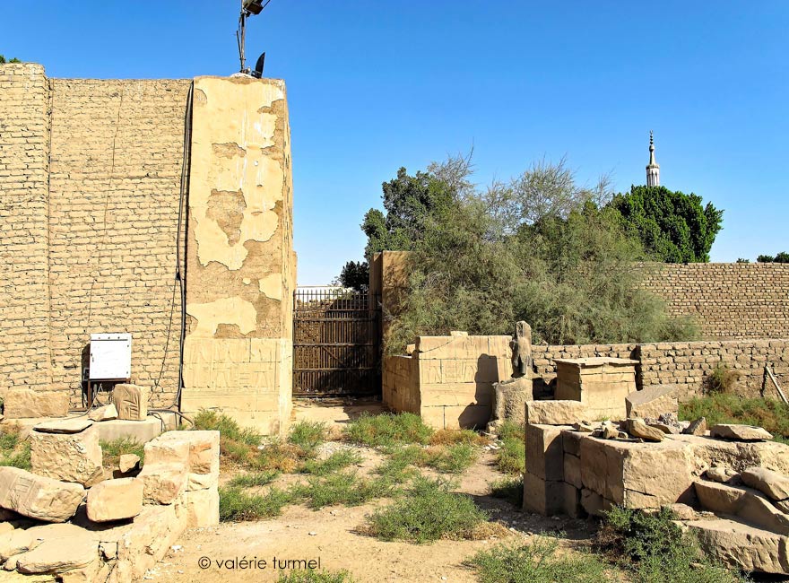 Une porte monumentale fut installée sous Nextanebo dans l'enceinte de briques drues du même roi. Devant cette porte, on voit les vestiges du kiosque de Ptolémée Neos Dionysos et du pylône.