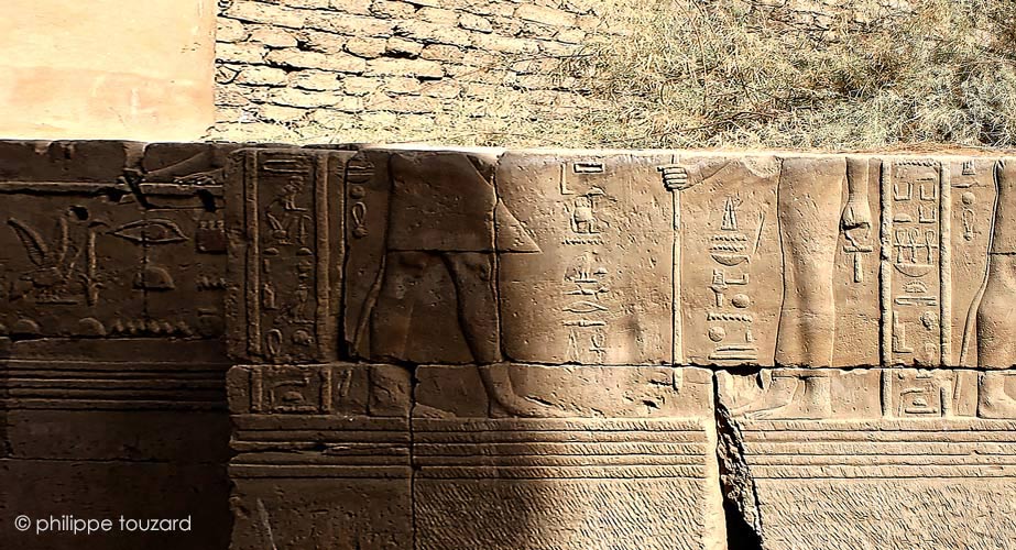 Ptolémée II a fait écrire ce texte dans ce décrochement de l'intérieur de la porte.