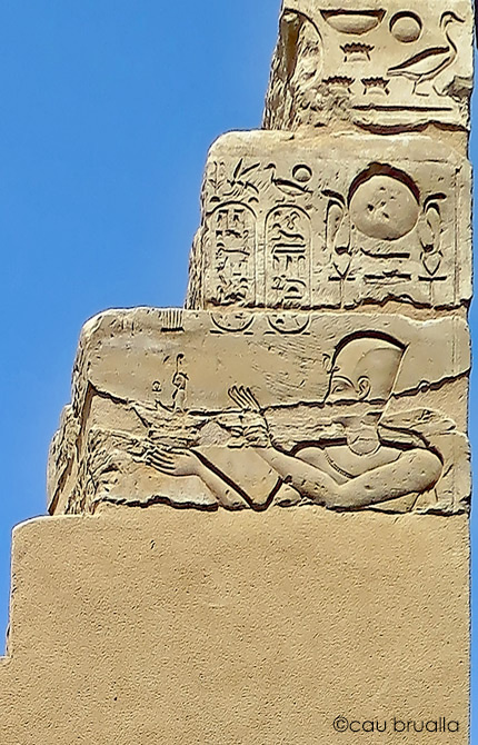 Le roi Ptolémée Philopator et au dessus du roi, Behedety.(Cfeetk, Ptah 124)