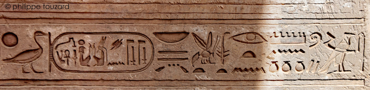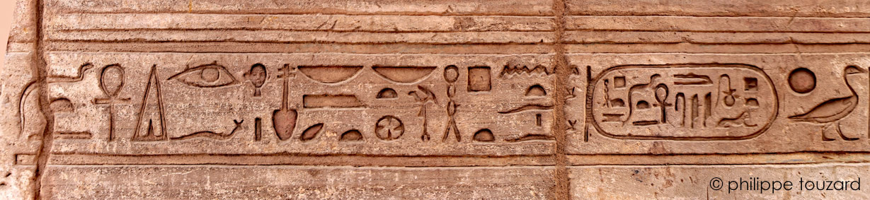 Restairation de ce monument fait par le roi de Haute et Basse Égypte, maître des Deux Terres,  Ptolémée Évergète 1er