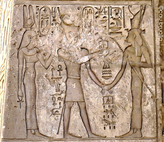 Ptolémée Évergète 1er reçoit un grand nombre de jubilés de la déesse Mout,maîtresse du ciel. Le roi est accompagné de la reine Bérénice II.  (Cfeetk, Ptah 101)