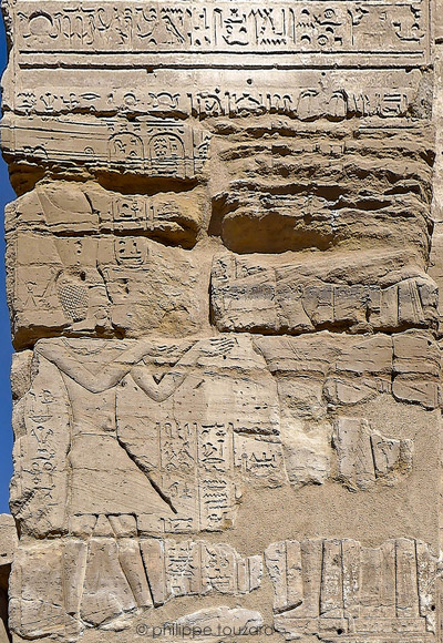 Le montant Est est couvert d'un long texte, hymne gravé pendant le règne de Ptolémée Alexandre