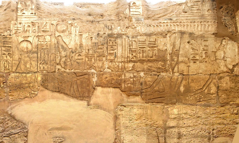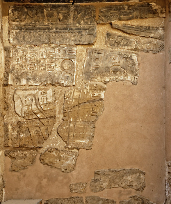 Dans 2 scènes symétriques, mais très endommagées, le roi oint Khonsou.
