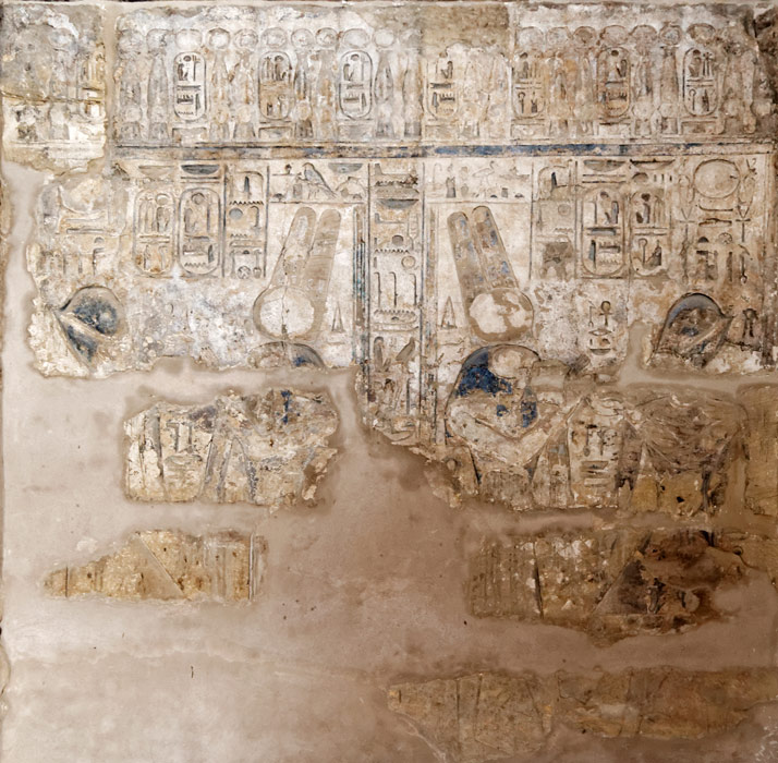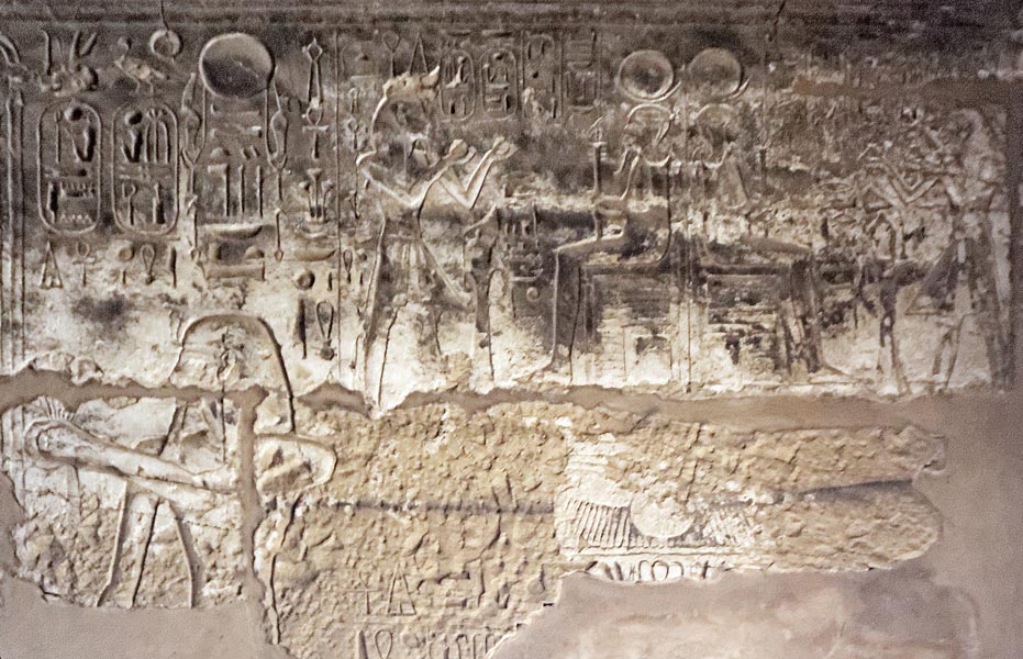 Sur la paroi sud, dans 2 scènes symétriques, le roi reçoit la vie de Khonsou.