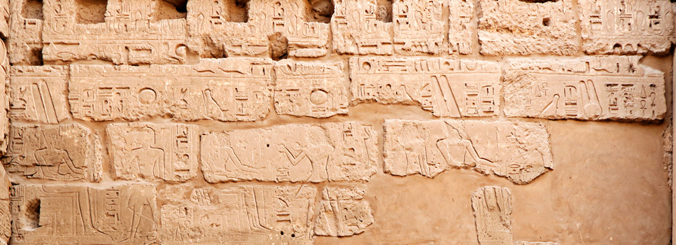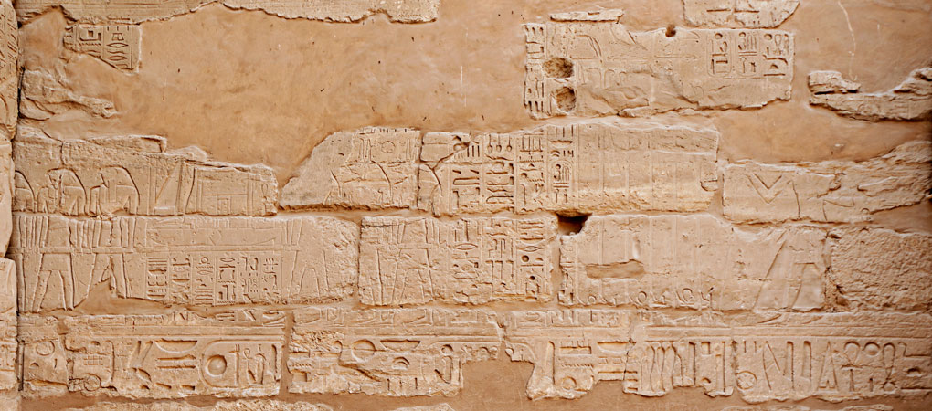 Le roi quitte le palais pour participer à différentes cérémonies. Il est précédé de plusieurs pavois ou enseignes divines portées par des signes ankh et ouas : Oupouaout, Horus et Thot pour les plus grands (Corteggiani, p.146). L'état des autres ne permet que de reconnaître que l'emblême de Neith (deux flèches croisées sur un bouclier) Pour les autres,  il s'agit notamment du placenta royal.