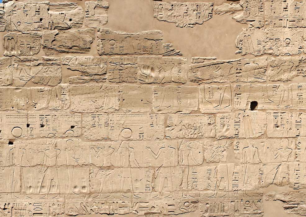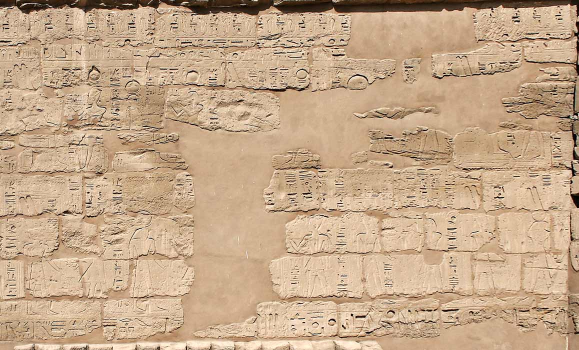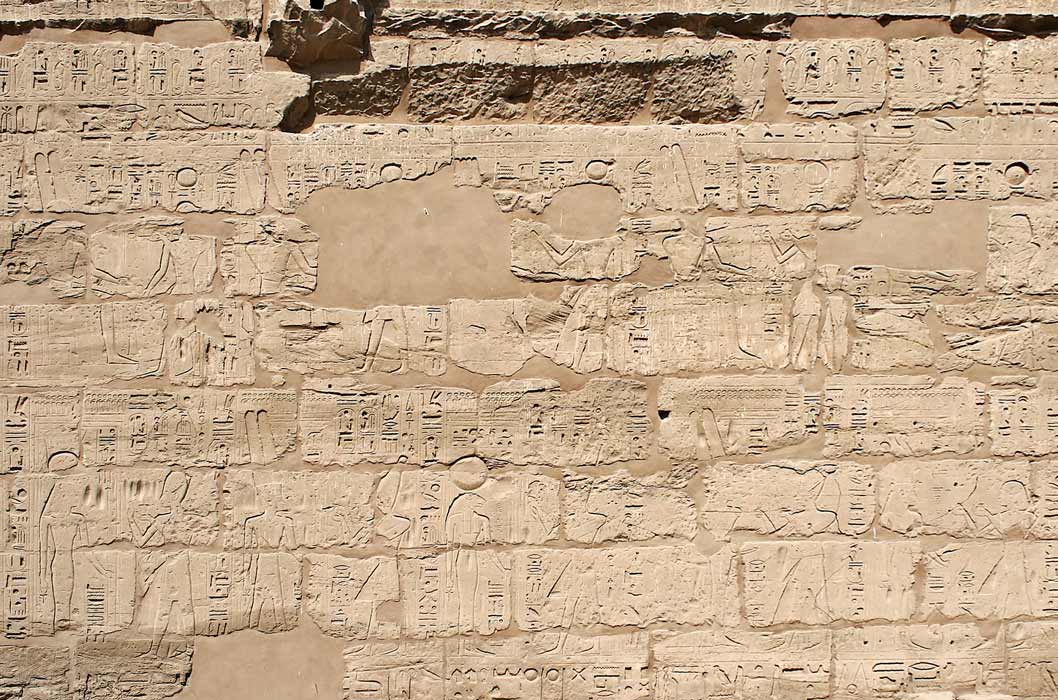 Cette partie du mur compte 30scènes d'offrandes dont  10 sont montrées ci-dessus. Une partie des scènes de droite est cachée par le mur des Bubastides.La coupure dans la présentation des scènes suit celle de l'Epigraphic Survey, mais sur le mur, la présentation est continue. Les divinités concernées ci-dessus sont :