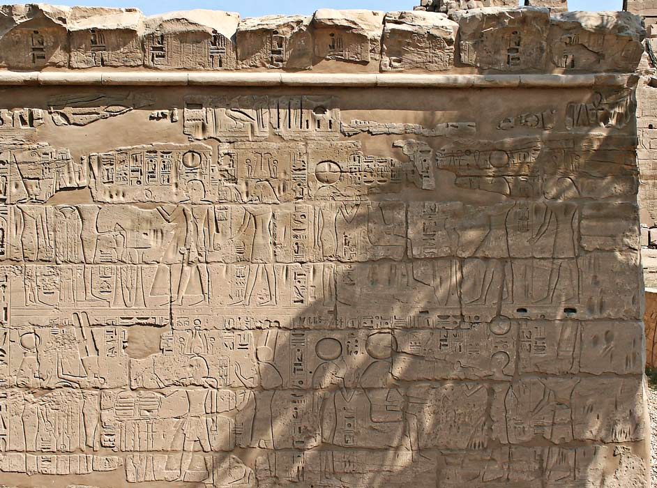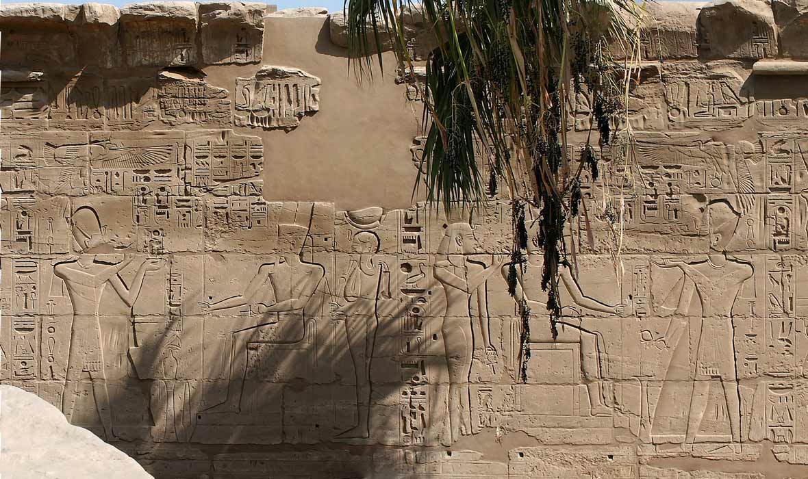 Le roi encense Amon et Mout.  Amon lui donne notamment toute vie, stabilité et puissance, et toute santé. Comme la scène à côté, cette scène termine la séquence des scènes commencées sur le mur Est et finissant sur le mur Sud.