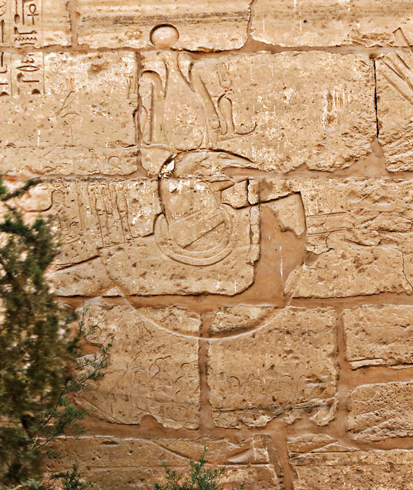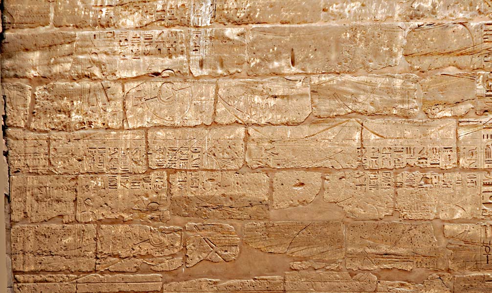 La barque d'Amon, Ouserhat, est tirée par la barque royale elle-même tirée par une flottille de navires.. Sur le relevé épigraphique, on peut voir que la barque transporte une grande chapelle.  Le roi est représenté sur le pont à l'avant 2 fois.