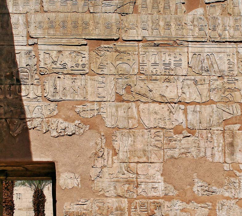 Au dessus de la porte à gauche, 2 petites scènes fragmentaires et la titulature d'Amenirdis.
