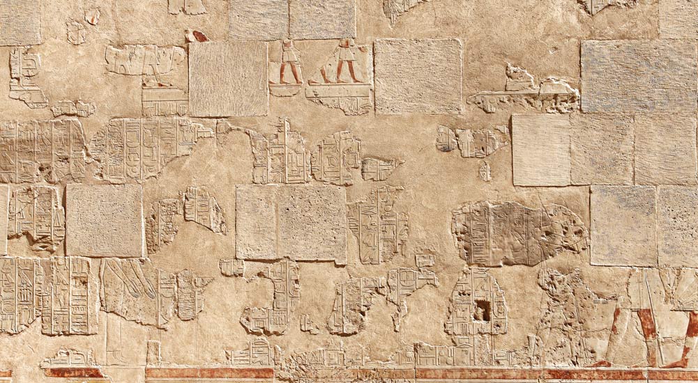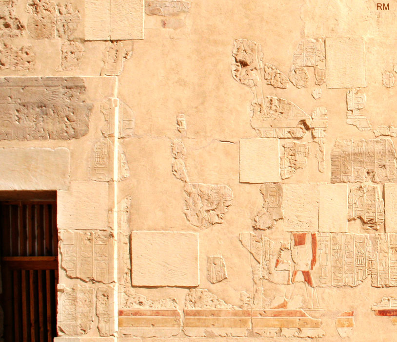 A droite, la reine est conduite par une déesse. A gauche, la porte de la chapelle d'Amon.