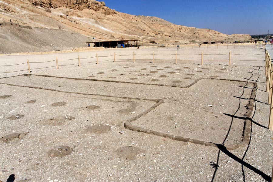 Mis au jour par les archéologues, l'emplacement des arbres peut être vue aujourd'hui au pied de la première rampe.