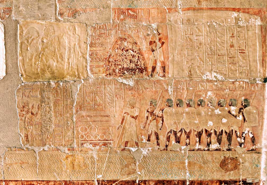 [Arrivée à Pount][Le pays de Pount][Echange des présents][Le chargement][Le Sema-Touy][La reine et la pesée][Les arbres et l'oliban][Thoutmosis][La reine sur son trône]