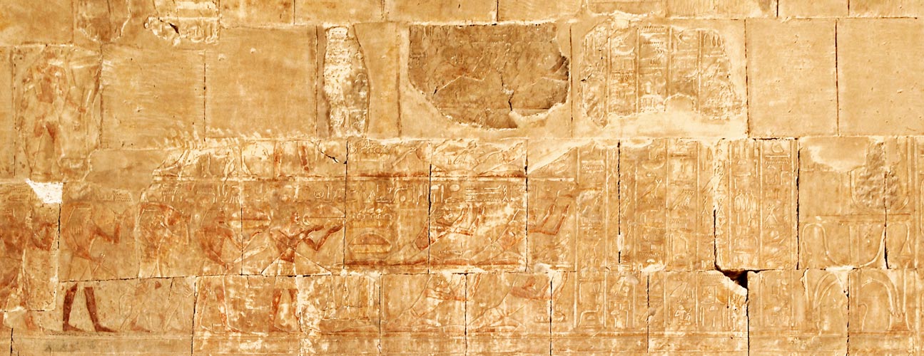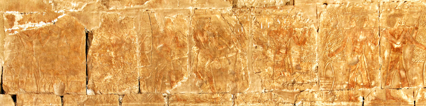 [Arrivée à Pount][Le pays de Pount][Echange des présents][Le chargement][Le Sema-Touy][La reine et la pesée][Les arbres et l'oliban][Thoutmosis][La reine sur son trône]