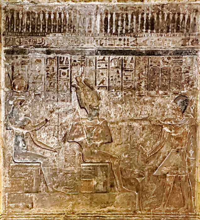Ptolémée IV encense Osiris et Isis. Osiris lui assure une inondation abondante. Isis lui donne l'éternité.