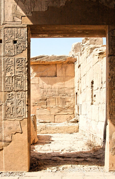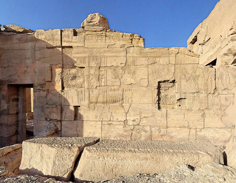 Les personnages ont été effacés, sans doute lors de la transformation d'une partie du temple en église chrétienne. Au milieu, on aperçoit la barque de Mout, la proue vers la droite. Devant elle, Sethy lui fait offrande d'un vase tenu par un petit roi, le tout sur un plateau. A droite, Sethy oint Amon, tenu aux épaules par Mout. Derrière la barque, Sethy adore Mout (probablement) dans une chapelle. A gauche, une partie de la chapelle XIV. La porte faisait communiquer la chapelle XIV et la chapelle de la barque d'Amon.