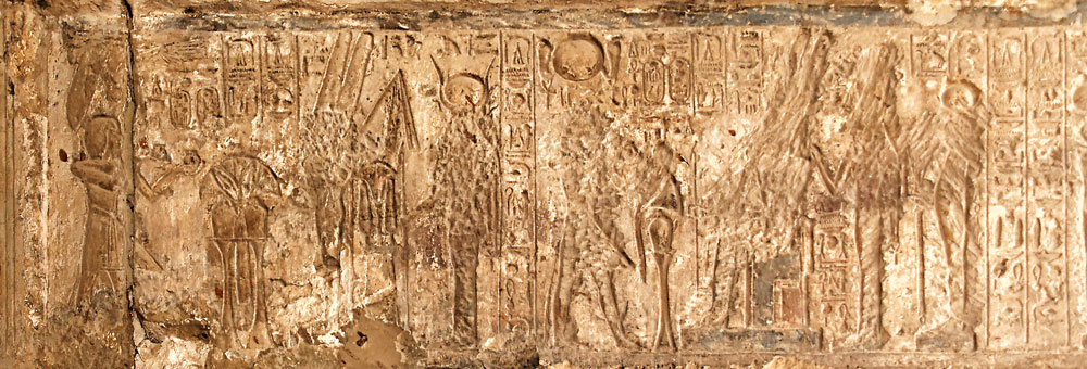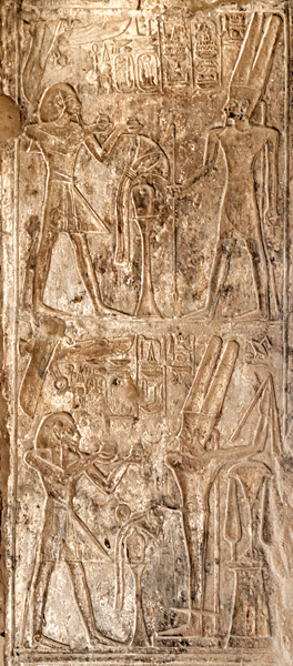 [Les montants de la porte][La fausse porte][Paroi de droite][La barque et le naos][Paroi de gauche]