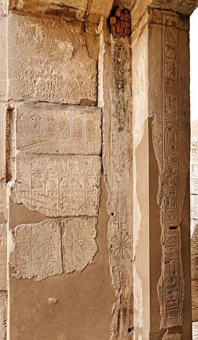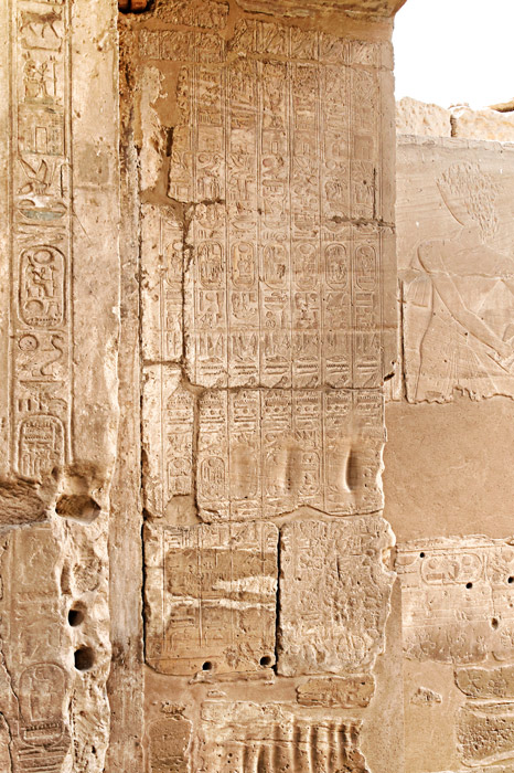 Sur la tranche du montant de la porte est gravé un texte de dédicace de Ramsès II à Sethy 1er.