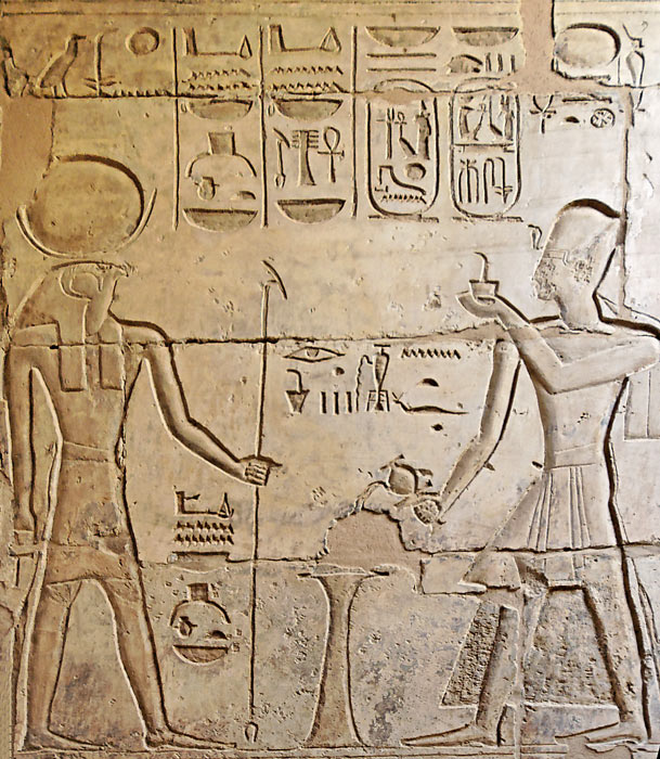 Dans une scène symétrique de celle du mur d'en face, Ramsès II offre des fleurs différentes à Amon-Rê.