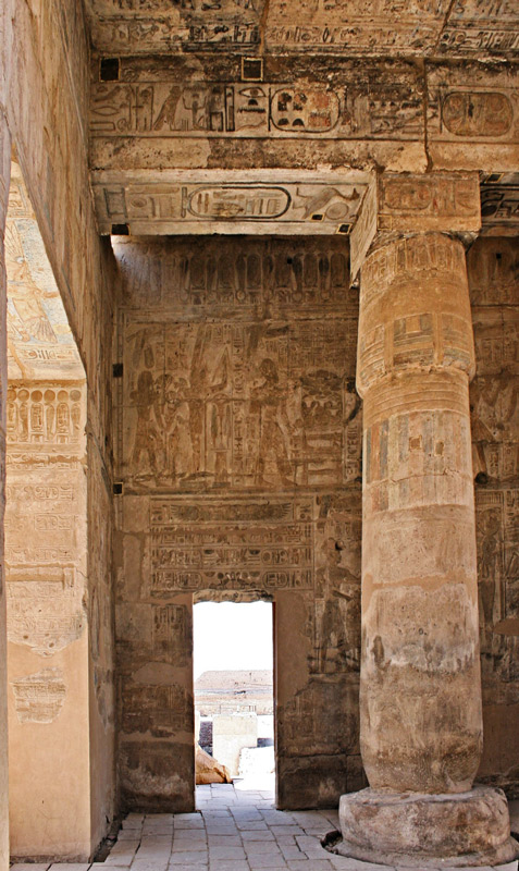 C'est le panneau dénommé Sud par les égyptologues. La présence de la forme courte du prénom de Ramsès II ( sans le stp-n-re) ainsi que la technique de gravure en bas-relief permet de le dater des 2 premières années du règne de Ramsès II (Brand, 1998). Sethy apparaît absent de ce panneau, à part son nom au dessus de la porte avec celui de son fils et dans la frise sous le plafond.