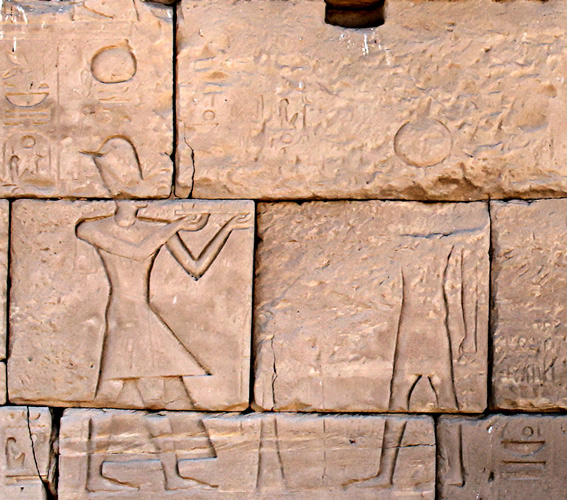 Registre du bas Scène 1 à gauche : Ramsès II adore Amon. Scène 2 : il offre 2 vases à Mout.