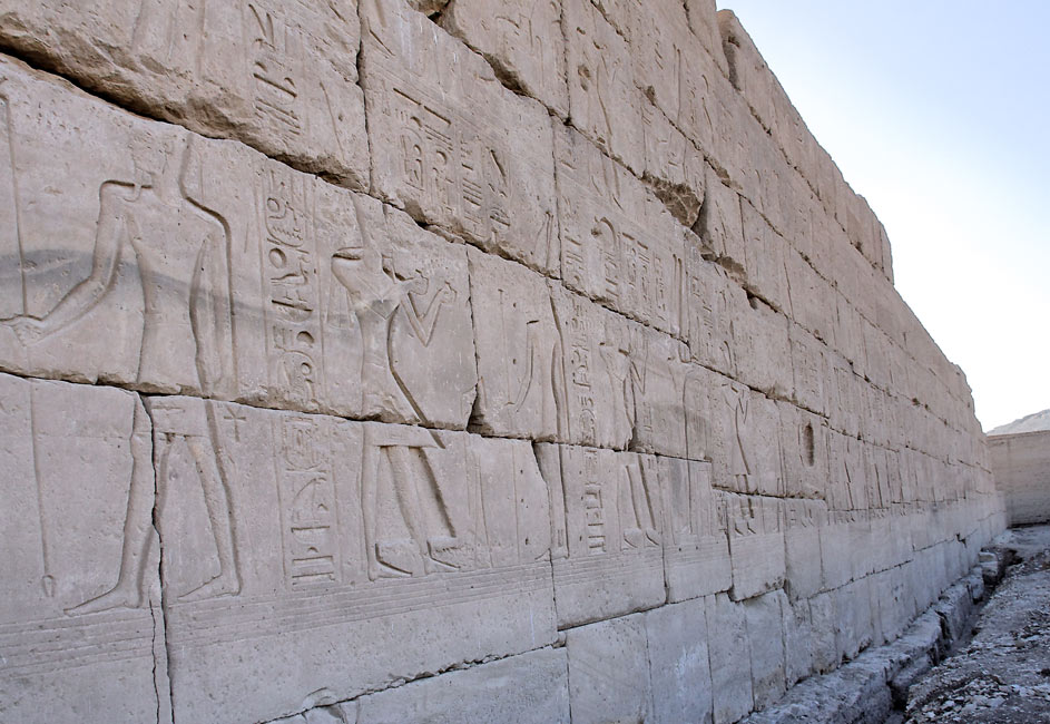 Du côté nord, le mur est couvert de scènes d'offrandes sur 3 registres. gravées sous Ramsès II. En haut, 3 scènes seulement sont encore lisibles. Au milieu , 15 scènes sont encore entières et 18 sont lisibles sur le registre du bas.. En bas, à droite, on peut voir le drain permettant que les eaux provenant des cultures n' abîme le temple. Les photos de cette partie sont dues, à de rares exceptions prés, à Raymond Monfort.