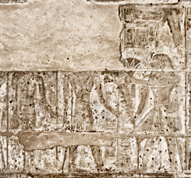 Le roi Sethy offre 2 bouquets à Amon et Mout (?).