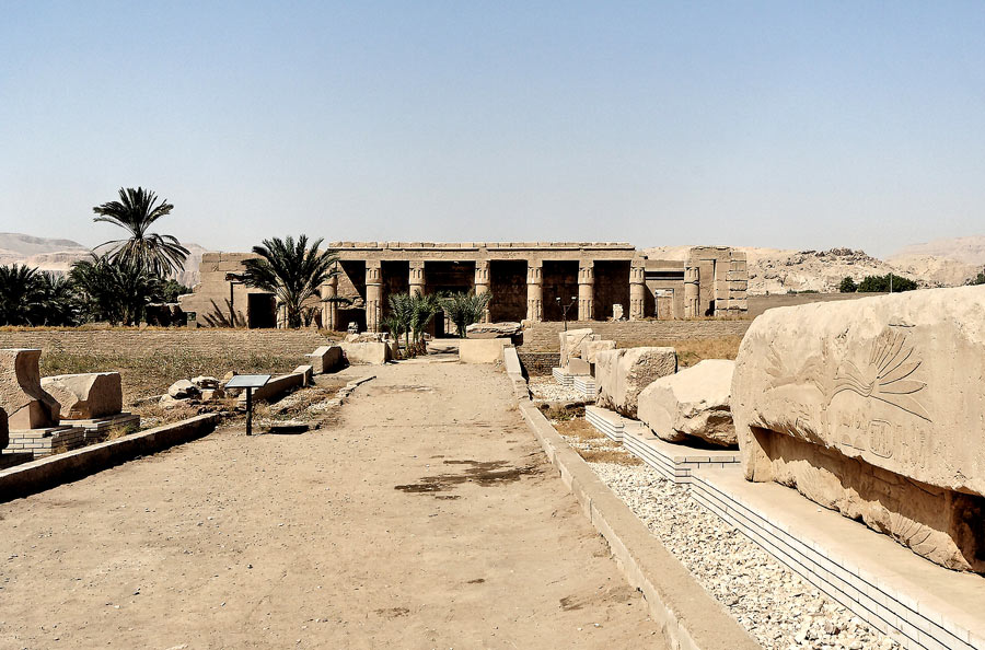 Sethy avait choisi cet emplacement qui faisait face au temple de Karnak. Il était localisé sur la route processionnelle qui allait de Karnak aux temples de Montouhotep II et Hatchepsout à Deir-el-Bahari. Cette route était utilisée notamment lors de la Belle Fête de la Vallée, une des fêtes les plus importantes à Thèbes. Le nom de son temple était : "Sethy, Mer-en-Ptah est glorieux dans le domaine d'Amon à l'ouest de Thèbes"". Dans ce temple, pour la première fois, une salle, la XIX, est dédié eau dieu Osiris.