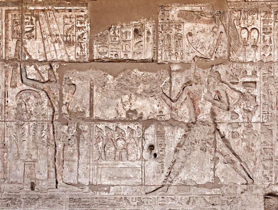Derrière, une autre représentation de Ramsès II, adorant debout le nom du temple.