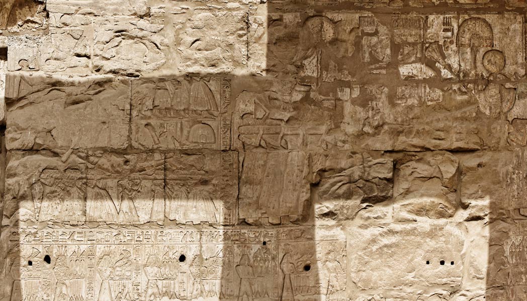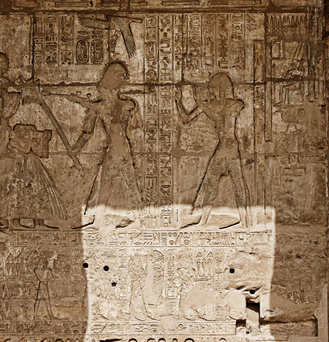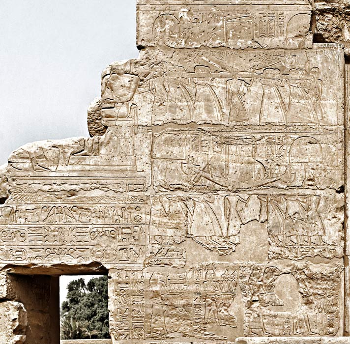 Ramsès II encense la barque d'Amon. Derrière lui, une représentation de Sethy 1er adorant le nom du temple. Derrière Sethy, une image d'Amon dont le texte a été usurpé par Merenptah. En dessous, le défilé des dieux-Nil.
