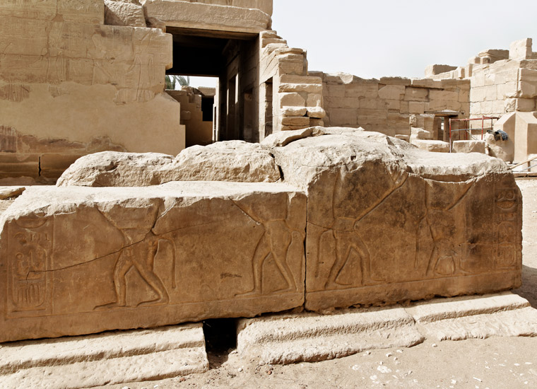 Les autels solaires sont constitués de grands blocs de pierre sur lesquels on disposait des offrandes destinées à recevoir les rayons du soleil. Sur le côté nord sont représentés des babouins dont la représentation est liée au culte solaire. Les babouins des hauts plateaux éthiopiens émettent des sons très proches de certaines langues humaines. Les égyptiens considéraient que leurs cris, proférés au moment du soleil levant, venaient de la langue des dieux. |