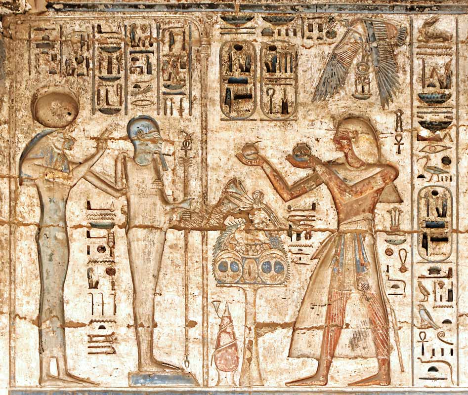 [Ptah, Sekhmet, Amon, Mout, Osiris][Amon-Rê-Kamoutef, Isis, Horus][Atoum, Sechat, Behedety, Thot][La triade thébaine]