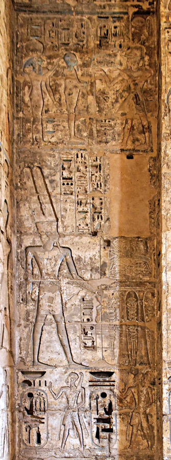Le roi offre de la nourriture à Ptah et Sekhmet qui, en retour, lui donnent le pouvoir, la stabilité et la santé