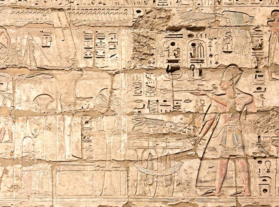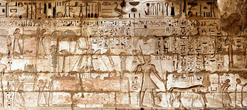 La statue de Min a été sortie de sa chapelle et part en procession précédée par le roi et par un taureau blanc, 'Kamoutef', manifestation d'Amon-Min. Ce 'Taureau de sa mère' représentait le dieu qui se perpétue en renaissant éternellement dans les rois successifs. Le dieu Min était placée sur une plateforme recouverte d'un drap précieux de couleur rouge qui cachait presque entièrement les porteurs. A l'arrière, des serviteurs portaient son mobilier cultuel et des salades dites 'romaines' qui étaient l'attribut du dieu, car leur suc blanc était censé représenté la semence du dieu toujours représenté ithyphallique.