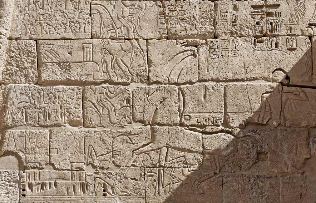 Sur le côté du pylône, cette scène de bataille concernerait des villes hittites.