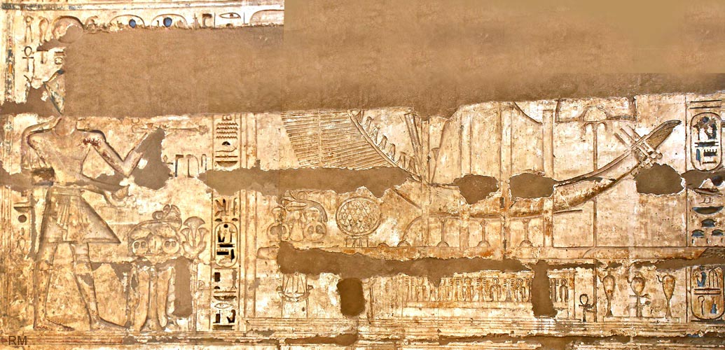 Paroi Est : Le roi oint l'emblème d'Horus fils d'Isis.