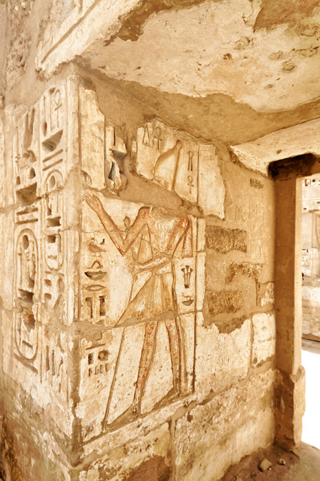 La porte d'entrée est décorée des titulatures de Ramsès III,