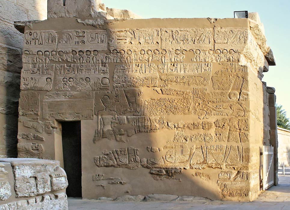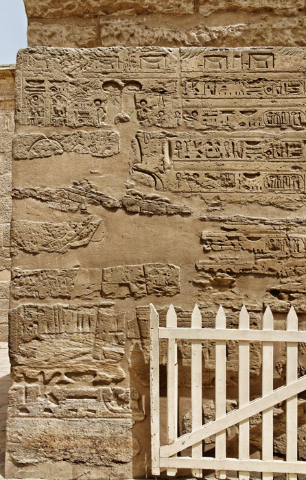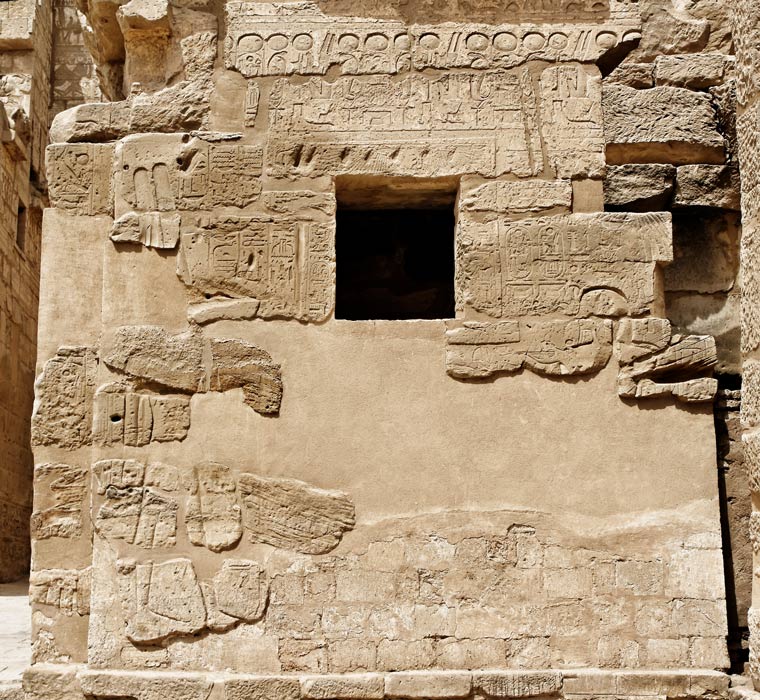 Tout autour de la fenêtre, sont inscrites les titres de Ramsès III.