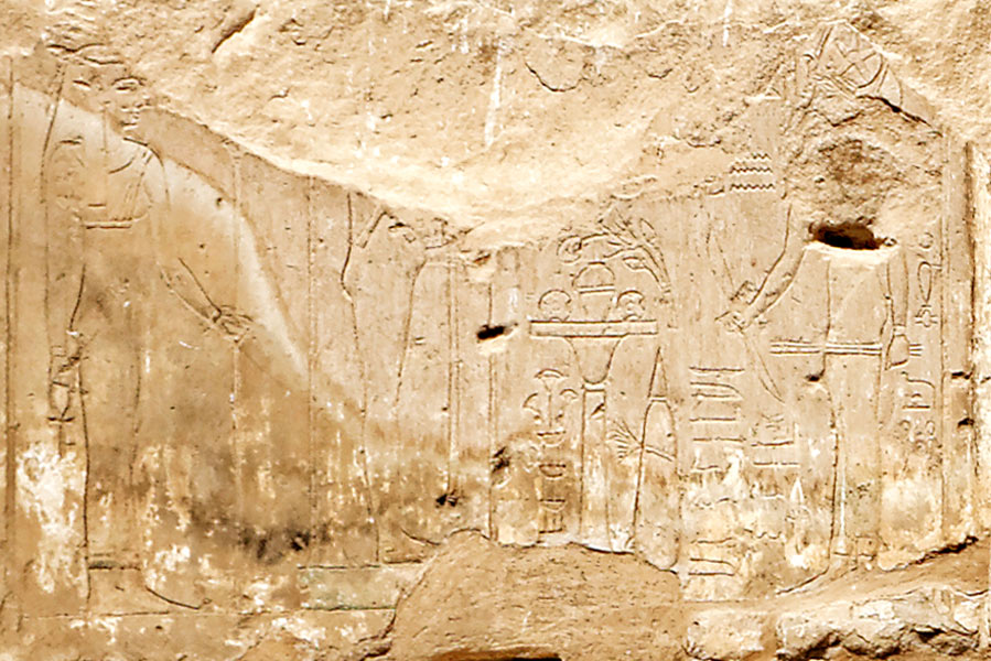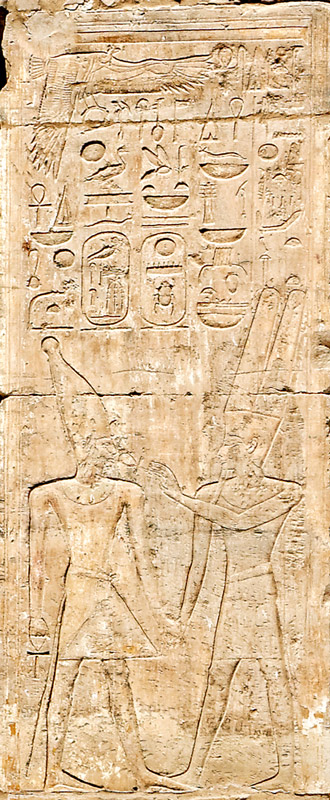 Pilier B : Thoutmosis III se tient devant Amon-Rê qui lui donne la vie, ainsi que toute stabilité, tout pouvoir et toute joie.