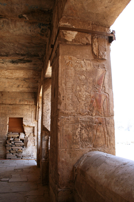 L'enfilade des piliers N, O, P dans la seconde moitié du vestibule nord : la porte Nord du sanctuaire est bloquée.