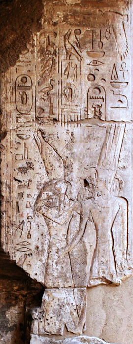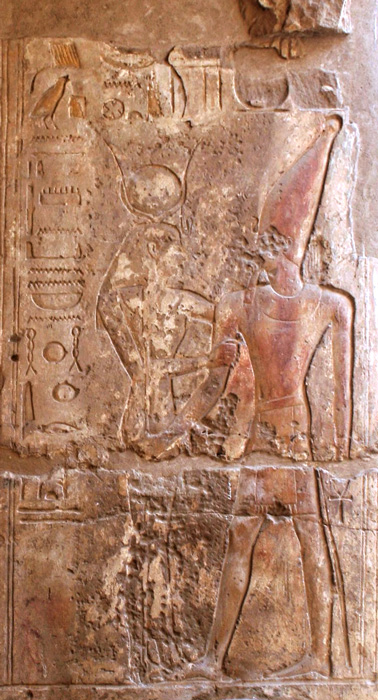 Pilier N, face a : e roi reçoit la vie d'Hathor.